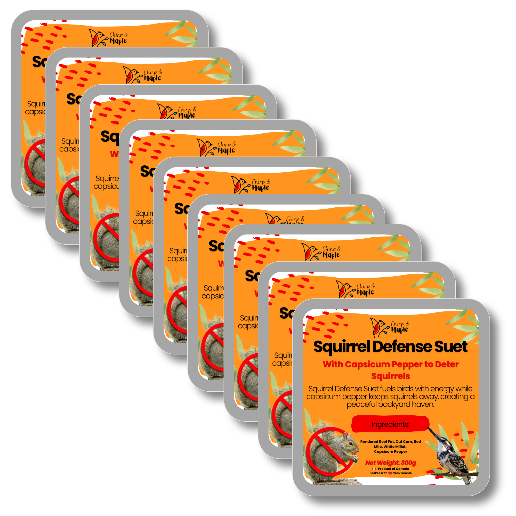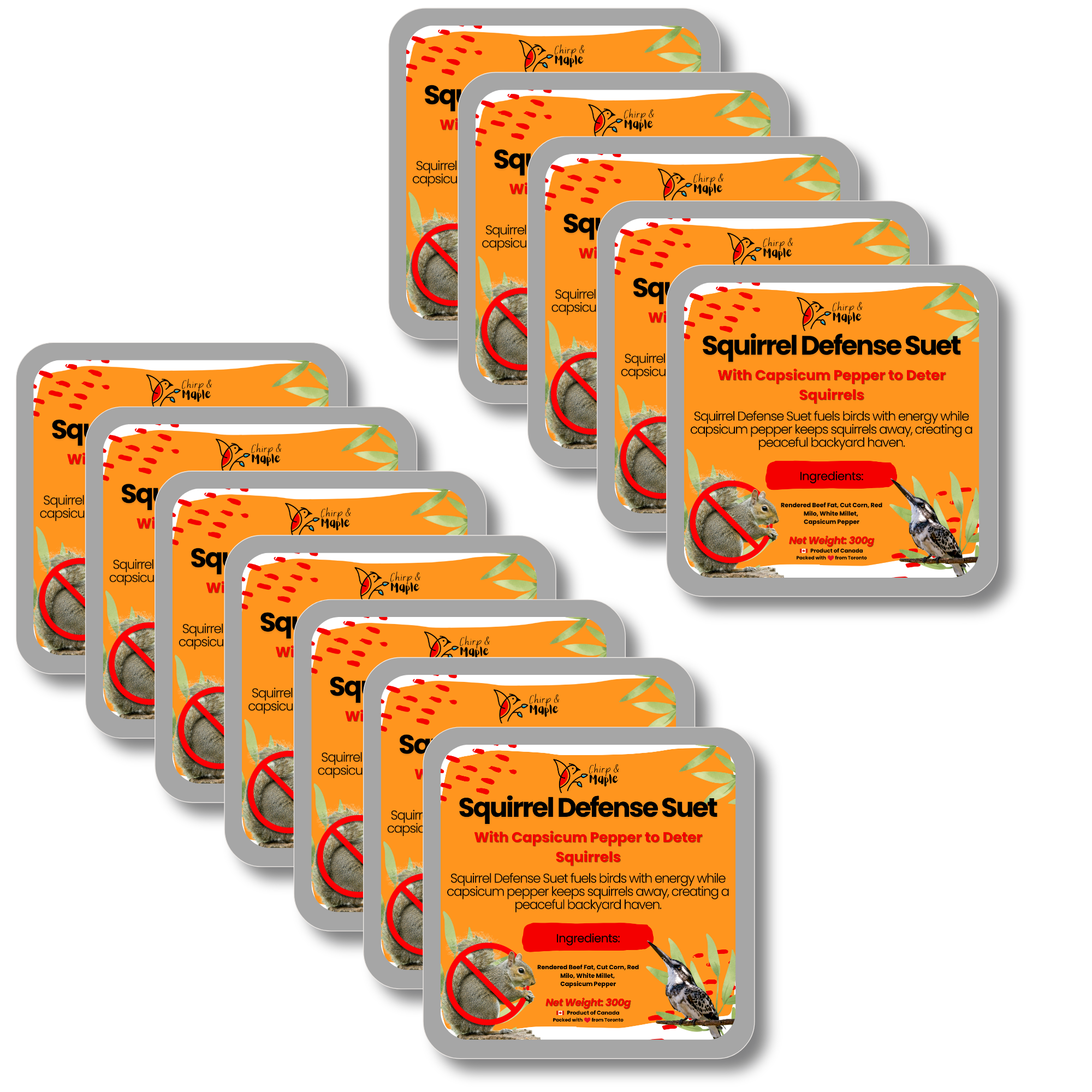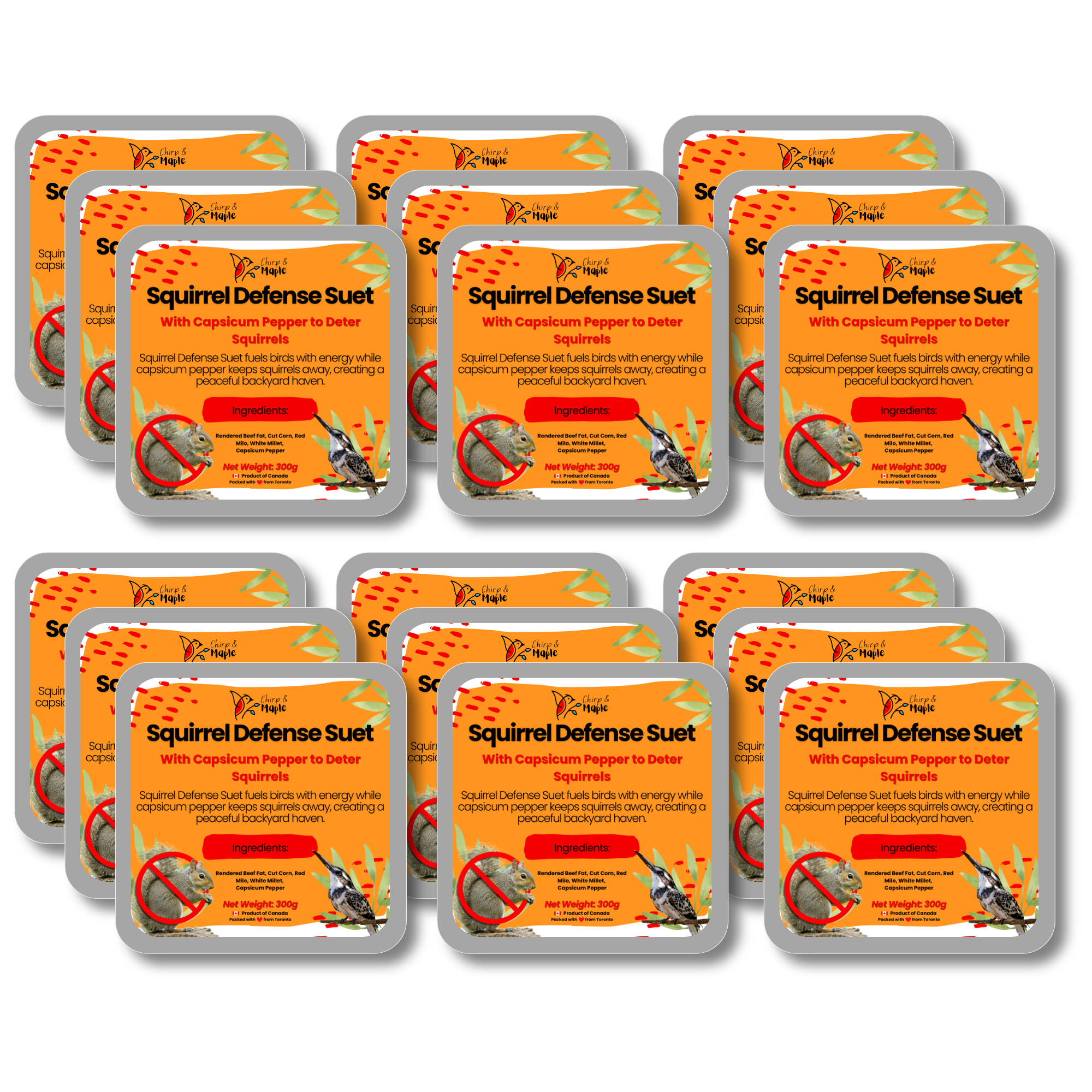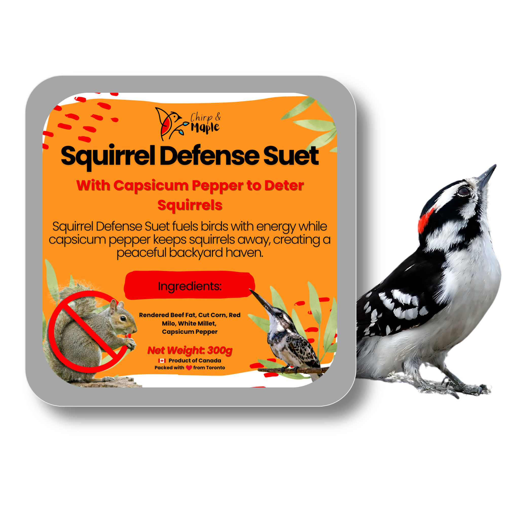 Bring more joy to your backyard birdwatching with our premium Hot Pepper Suet, specially crafted to attract the birds you love while naturally deterring unwanted pests. Infused with capsicum pepper, this spicy formula gently trains squirrels to steer clear, helping protect your feeders over time. Birds like cardinals, chickadees, and woodpeckers flock to its rich blend of rendered beef fat, cut corn, red milo, and white millet — a nutritious, energy-packed recipe designed just for them. Perfect for standard suet cages and feeders, it offers a versatile, mess-free feeding solution that stays intact and lasts longer, minimizing waste while maximizing enjoyment. With every block, you’ll feed the birds you want and keep your feeders safe from damage, making backyard birding simpler and more rewarding.